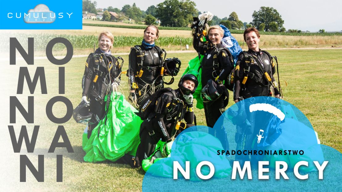 Drużyna Formation Skydiving 4-way NO MERCY z kamerzystą Marcinem Zimnowłodzkim - zdobyła brązowy medal na 24 Mistrzostwach Świata w Formation Skydiving 2021, w Tanay (Rosja). W tym roku zdobyła również srebrny medal na Spadochronowych Mistrzostwach Polski FS- 4. Dotychczasowe osiągniecia to medale na Mistrzostwach Europy, wiele medali na zawodach międzynarodowych, krajowych oraz rekordów Polski w liczbie punktów zdobytych podczas jednej rundy zarówno na zawodach tunelowych jak i outdoorowych.